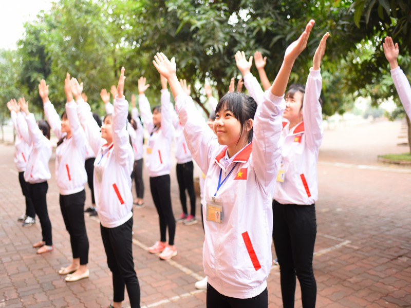 Thực tập sinh khởi động để làm ấm cơ thể vào đầu buổi học gíao dục thể chất