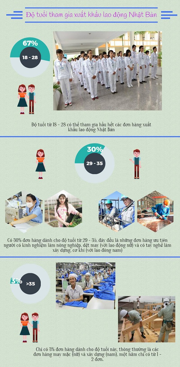 Với những ngành nghề khác nhau, các xí nghiệp Nhật Bản yêu cầu những độ tuổi của người lao động khác nhau